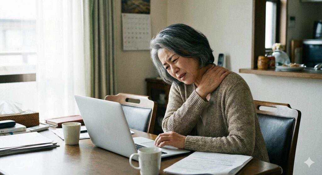 首や肩の筋肉が常に緊張状態にあると、血流が低下し痛みが持続します。特にプロジェクトの締め切り前は緊張が顕著になりやすいです。放置すると慢性化し、日常生活にも支障をきたします。
